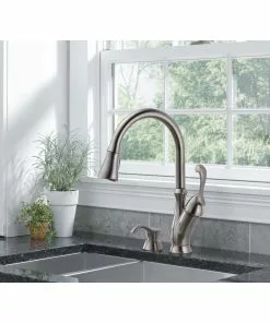 Delta Arabella Single Handle Lever Pull-Down Kitchen Faucet With Soap Dispenser, Stainless
