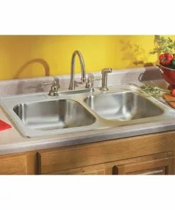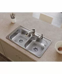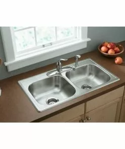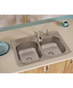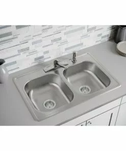 Elkay Dayton Double Bowl 33 In. X 22 In. X 8-1/16 In. Deep Stainless Steel Kitchen Sink, Top Mount