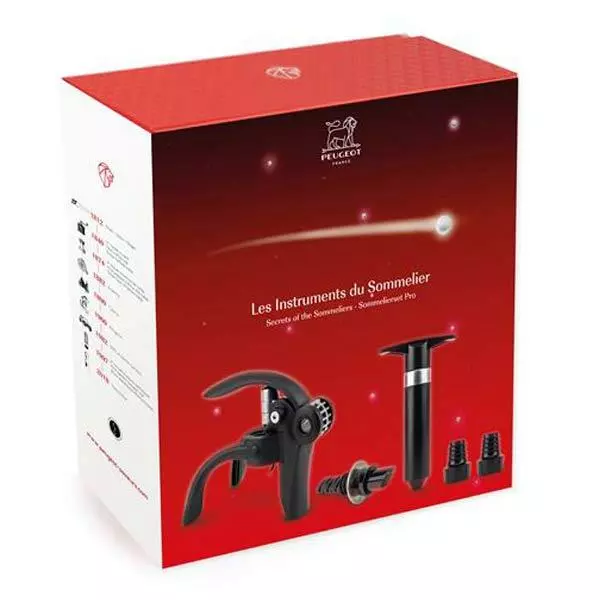 Åbn nemt og hurtigt din vin – og bevar den, hvis du ikke drikker hele flasken – med proptrækkeren og vinpumpen fra Peugeot.- Passer til alle flaskehalse-Â Ergonomisk design- Inkl. praktisk skænkepropI denne gaveæske fra Peugeot får du både en Baltaz propt