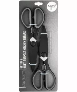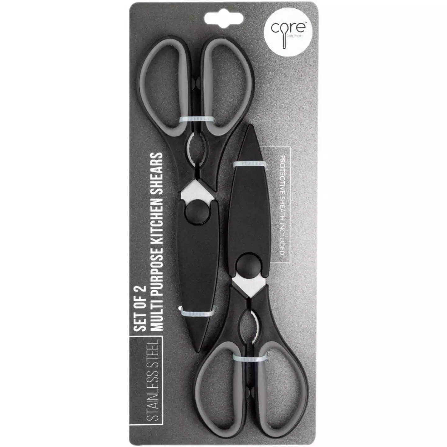 Kitchen shears are great for everyday household tasks. Features a comfort grip handle for easy use. Protective sheaths are included to store away. Hand wash recommended.