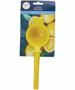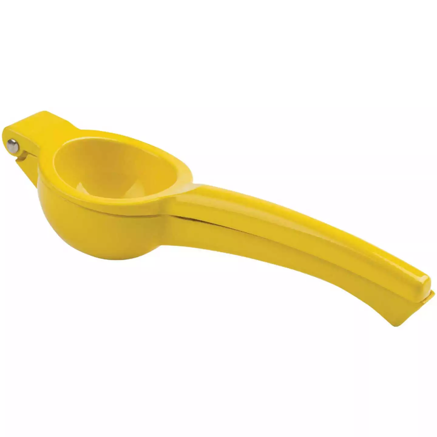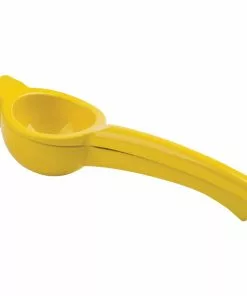 Yellow plastic juicer is perfect for juicing citrus fruits, without seeds or pulp. Dishwasher safe.