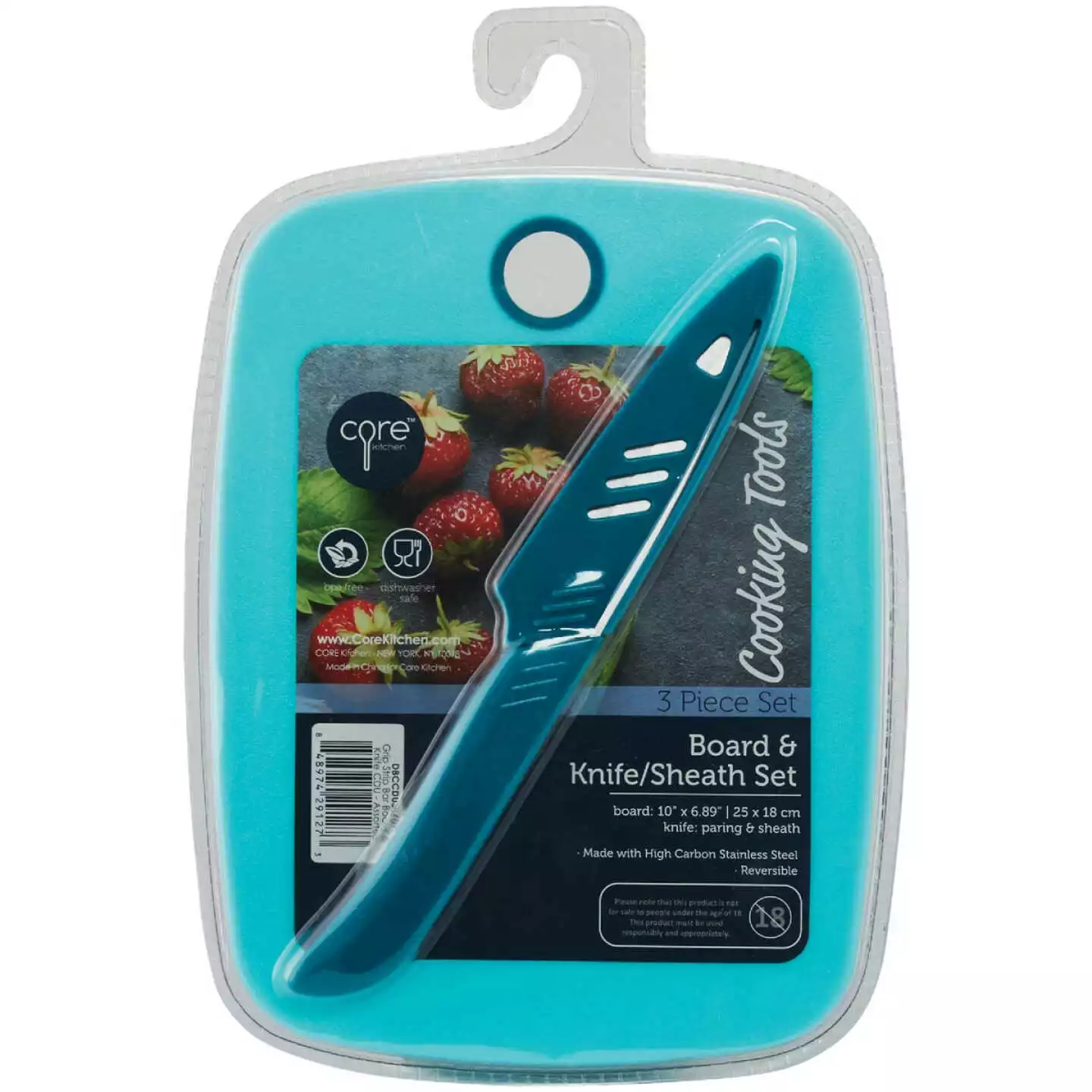 Combining the benefits of non-slip silicone with our top quality poly, these boards will hold tight to the counter while you slice and dice away. Paring knife included is made of durable coated stainless steel. Protective sheath included.