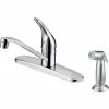 Classic Series. Chrome finish, lever handles. 3-hole 8″ center installation. 1.8 GPM (gallons per minute) flow rate. 360 deg. swivel spout, no spray. Features Diamond Seal Technology for over 5 million trouble-free uses. 3/8″ O.D. Pex supply tubes 36″ long connections. For replacement cartridge see Model No RP50587 (SKU 401221). ADA (Americans with Disabilities Act) compliant. Complies with California lead-free law AB1953. Lifetime faucet, parts and finish warranty to the original purchaser.