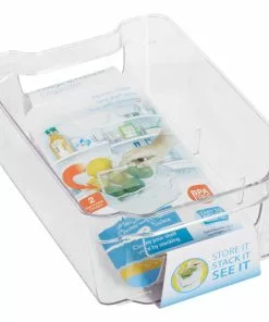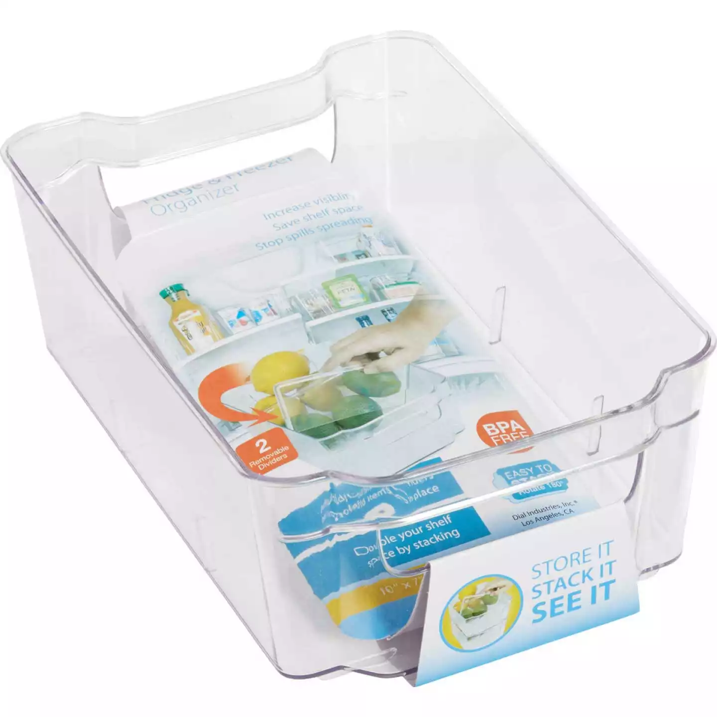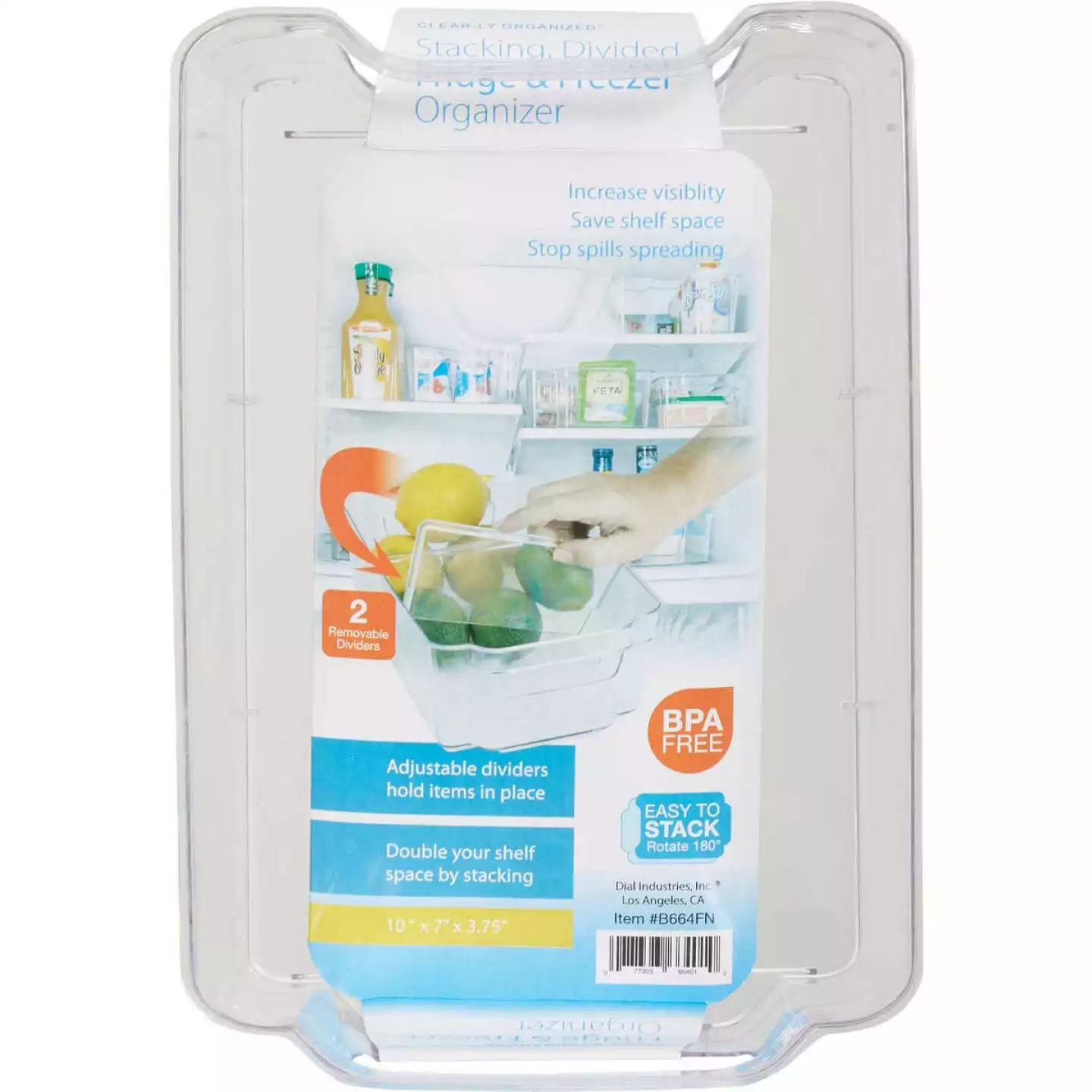 This clear bin allows you to create your own compartments for smaller items with the dividers. Helps you organize your kitchen quickly and easily. Easy to clean with soap and water; BPA free.
