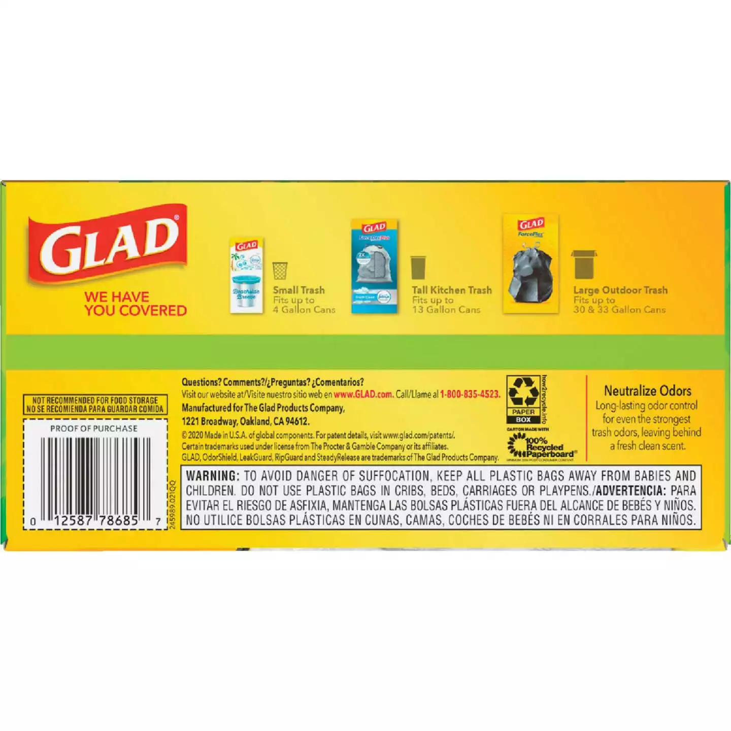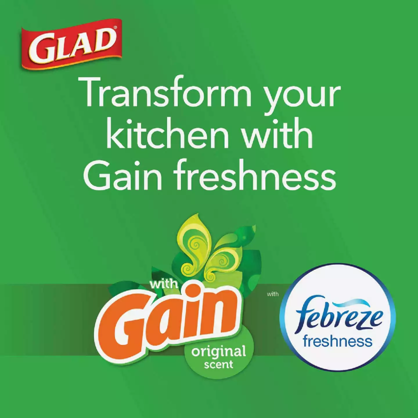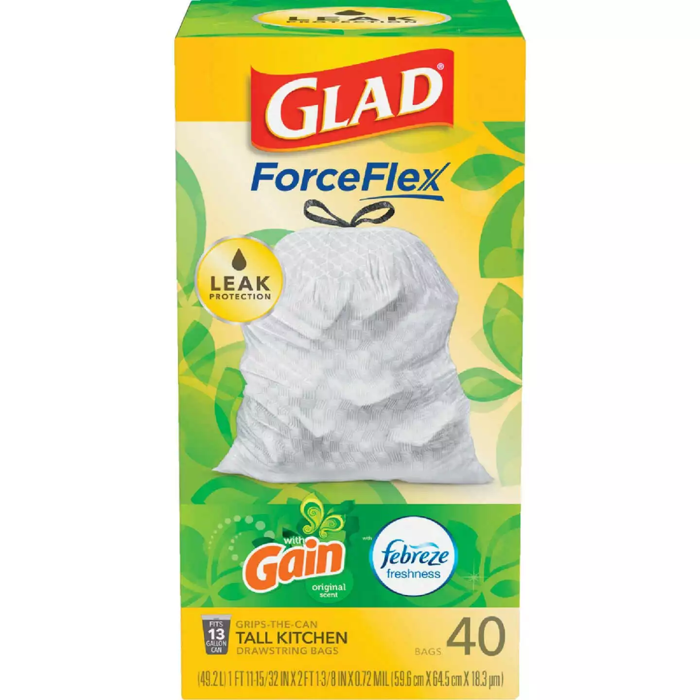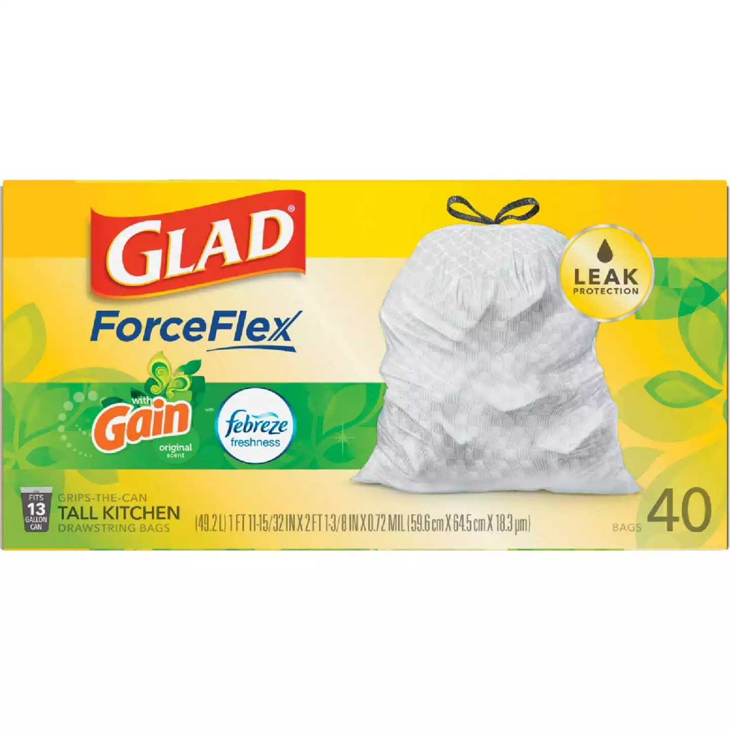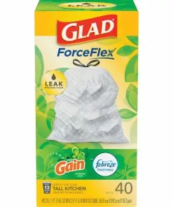 Tall kitchen trash bags provide continuous odor neutralization and leave behind fresh scent. Reinforcing bands add strength. Drawstring makes closing and carrying easy.