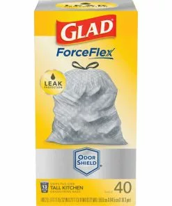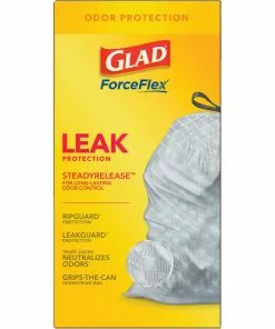 ForceFlex Plus tall kitchen trash bags have RipGuard and LeakGuard protection. Unscented Odor Shield. Drawstring closure grips the can – easier carrying.