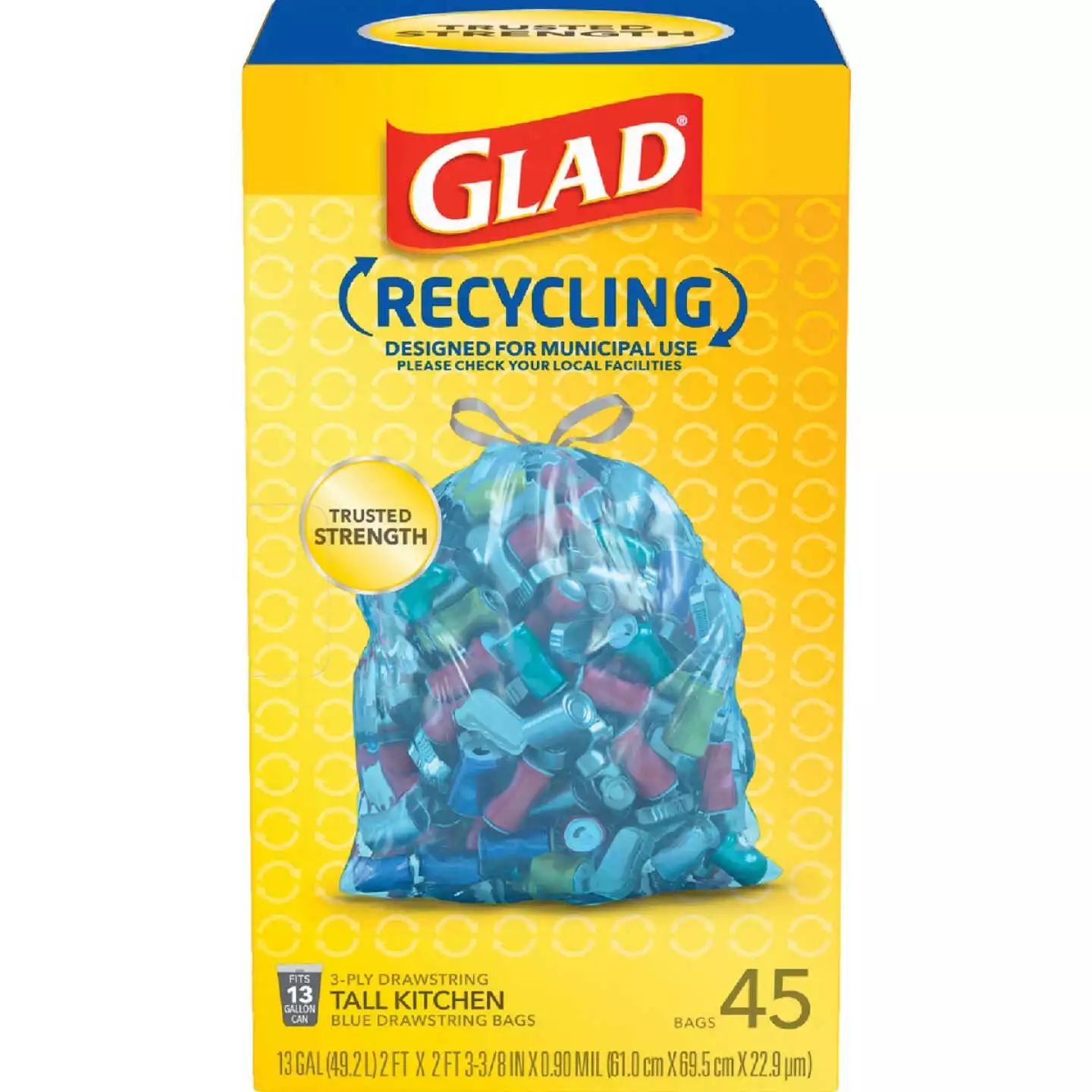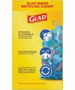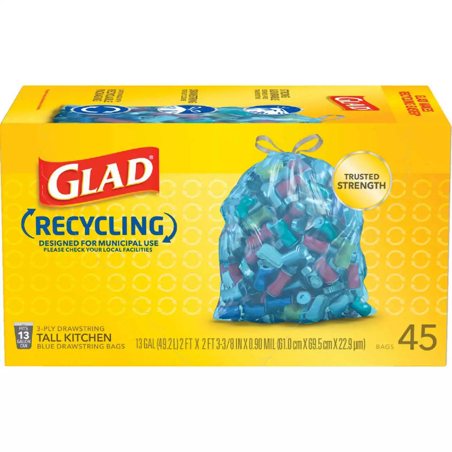 If your local recycling program calls for blue bags, Glad has you covered. Strong drawstring makes closing easy and dependable. For use with applicable municipal blue bag programs. 3 ply.