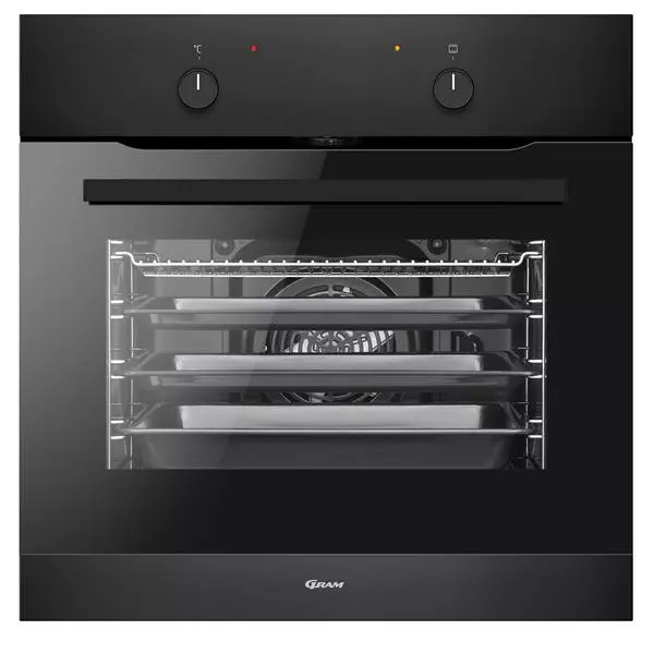 Gram – IO 5610-90 B – IndbygningsovnSpecifikationer:Energiklasse AOvnrum kapacitet: 65 literIndbygningsmål: HxBxD; 59,5x56x56 cm