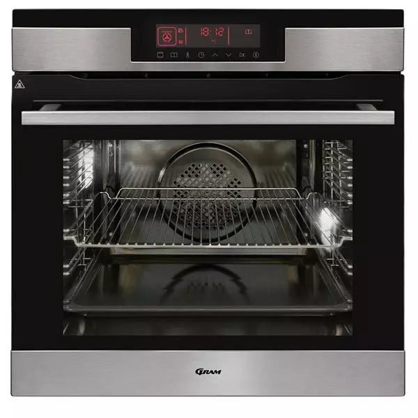 Gram – IOP 20690-94 X – IndbygningsovnSpecifikationer:Energiklasse A+EasyOff SteelBakingPro systemStort ovnrumFast HeatingOptøningsfunktionÆgte varmluftLCD display m. touchECo funktionStegetermometerHalogensidespotsPyrolyseIndbygningsmål HxBxD: 59,5x56x56