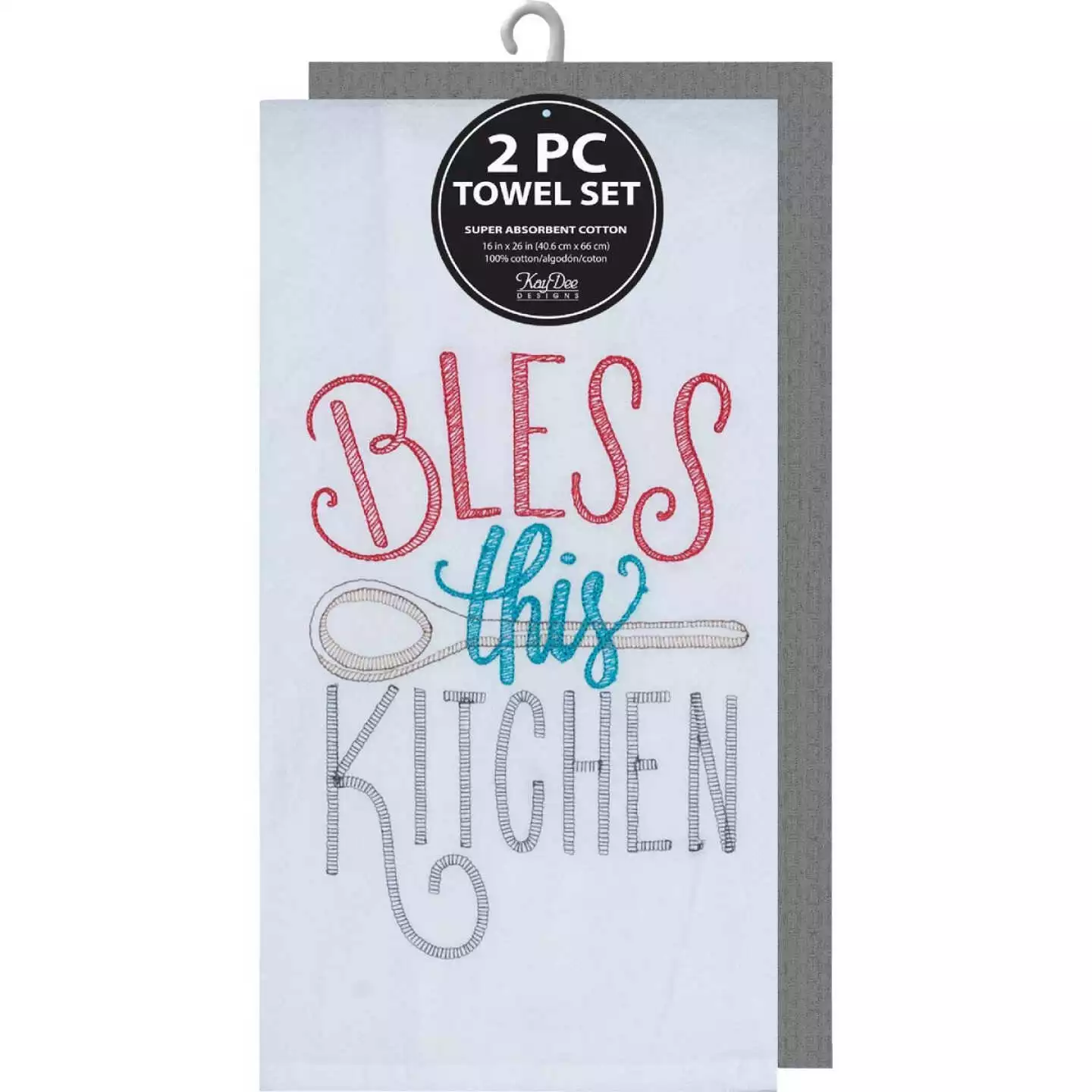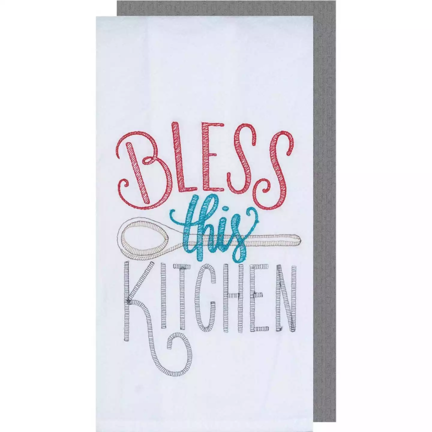 Durable embroidered kitchen towel is 100 % cotton.