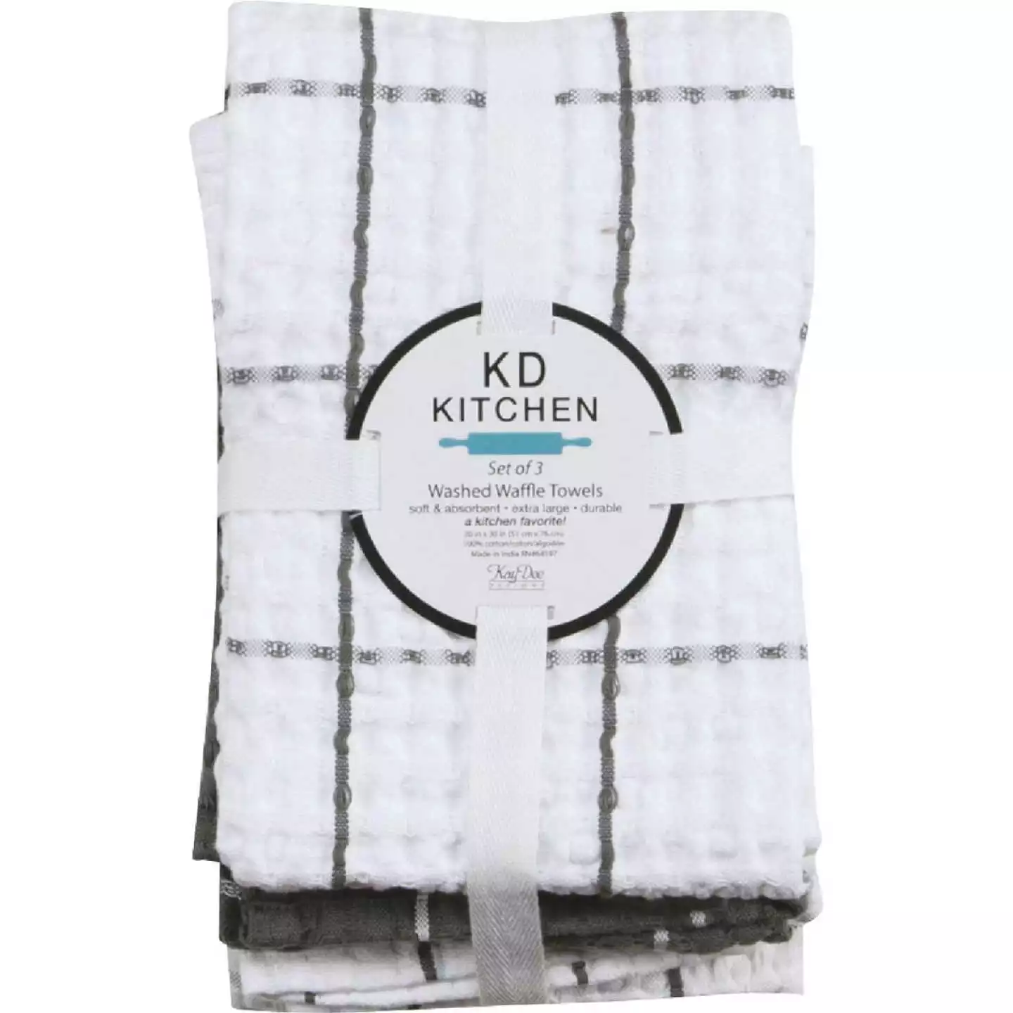 Extra large washed waffle towels are soft and absorbent. Durable 100% cotton.