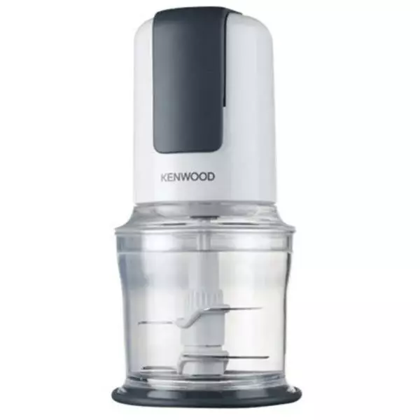 Minihakker fra KenwoodRummer 0,5 liter Motor 450 Watt2 hastighederVelegnet til at hakke urter, løg, nødder osv.Medfølger udstyr til piskning af mayonnaise