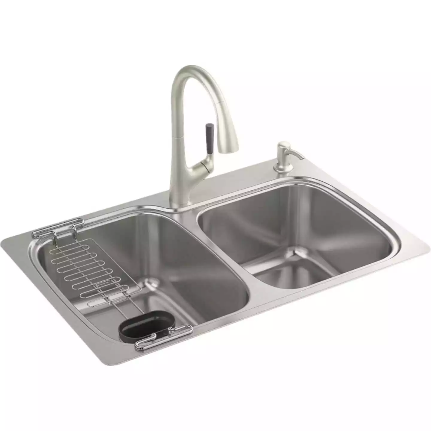 - Includes two sink strainers, kitchen sink utility rack with soaking cup, installation hardware