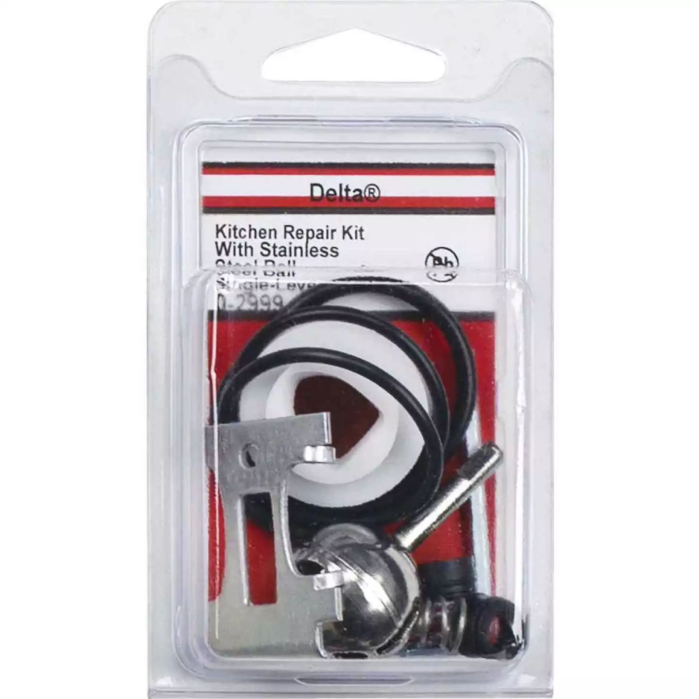 Delta faucet repair kit for kitchen and lavatory. Contains #70 stainless steel ball, cam assembly, O-Rings, seats and springs and wrench. Complete kit for metal lever handle.