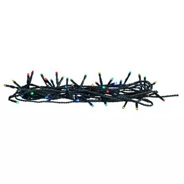 Sken multifarvet lyskæde fra Markslöjd. Godkendt til udendørsbrug. 12m grøn ledning med 120st LED-lys. Max 3,6W. 5 meter ledning med transformer.