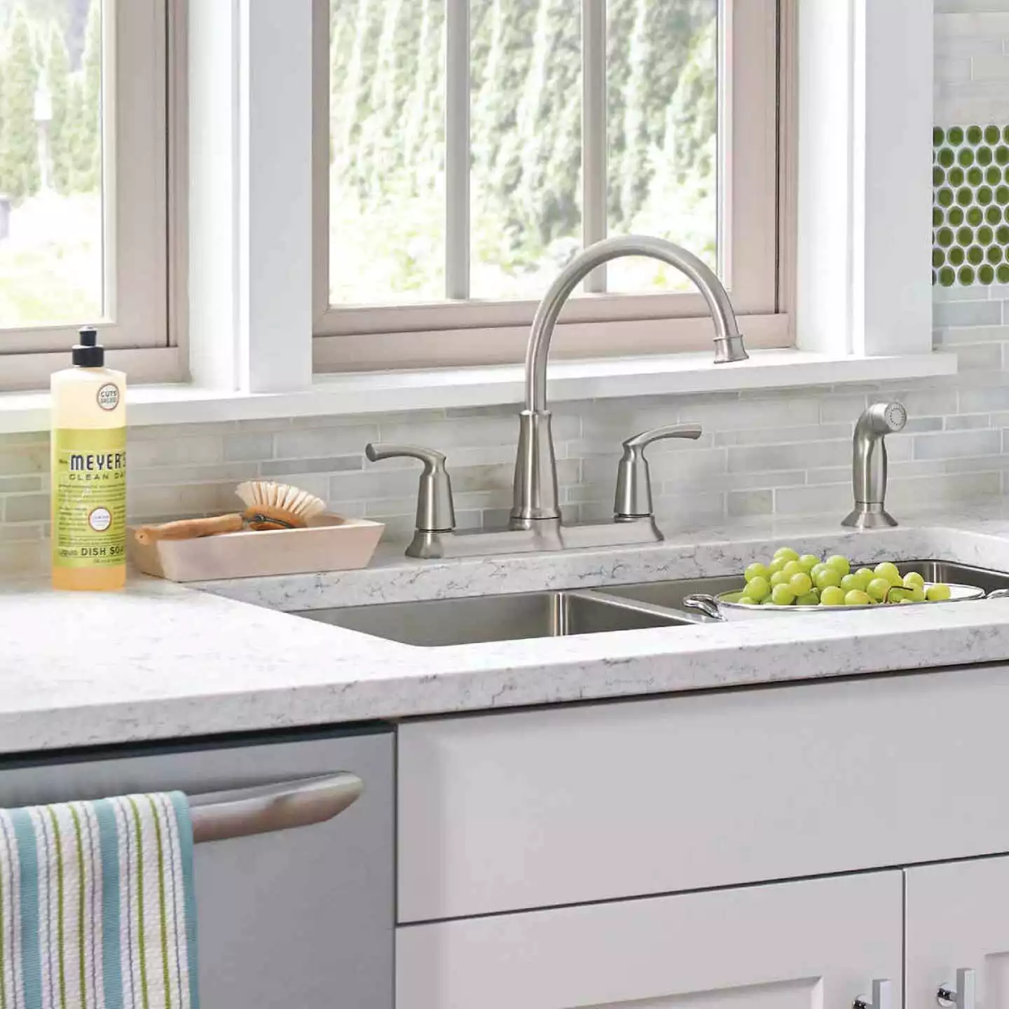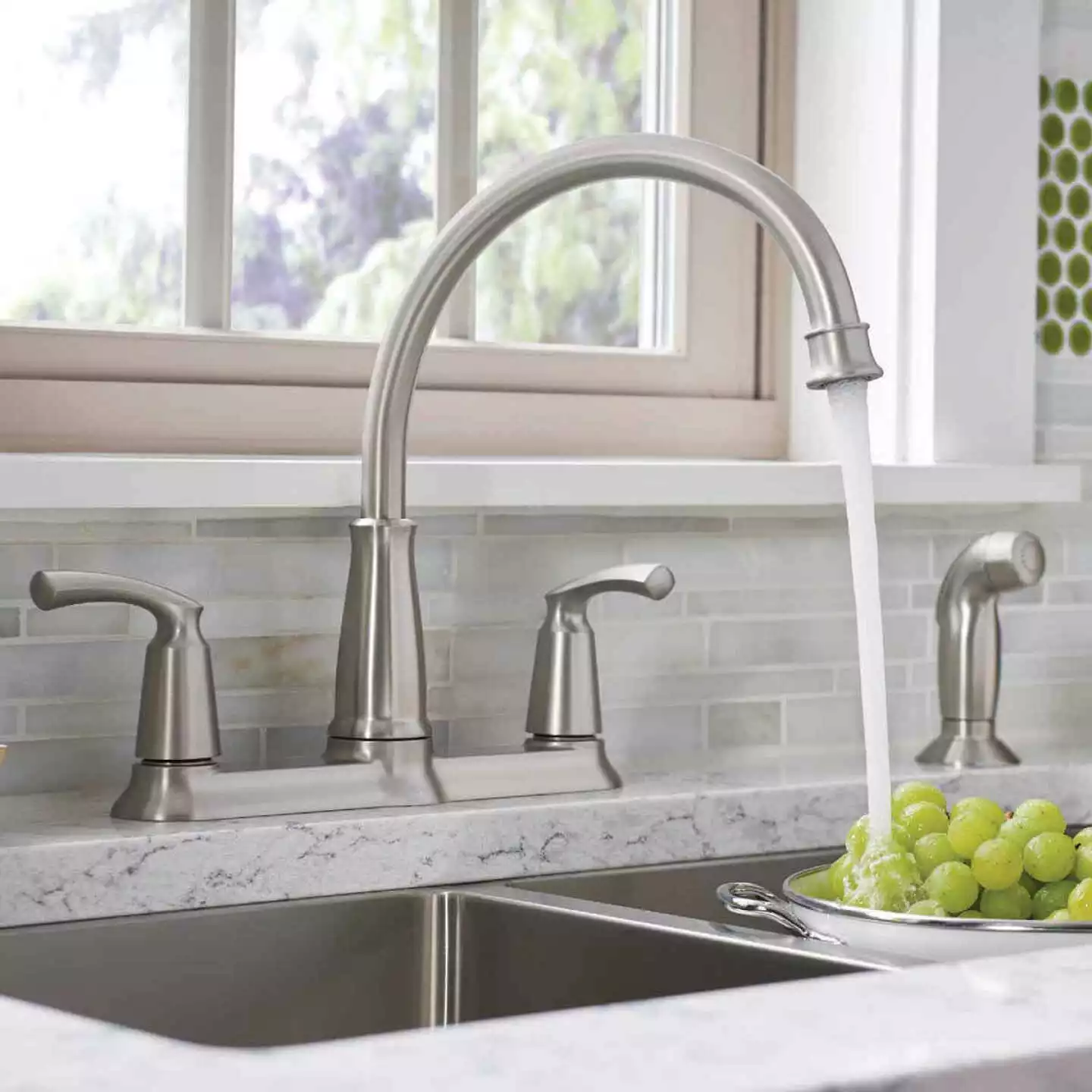 - Includes side spray hose for convenient, flexible cleaning at the sink