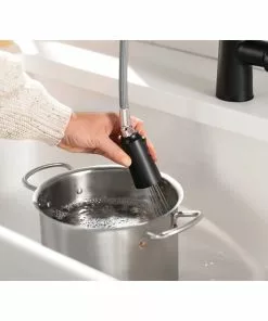 - Faucet pulldown hose offers flexible water delivery and hose retracts with ease