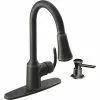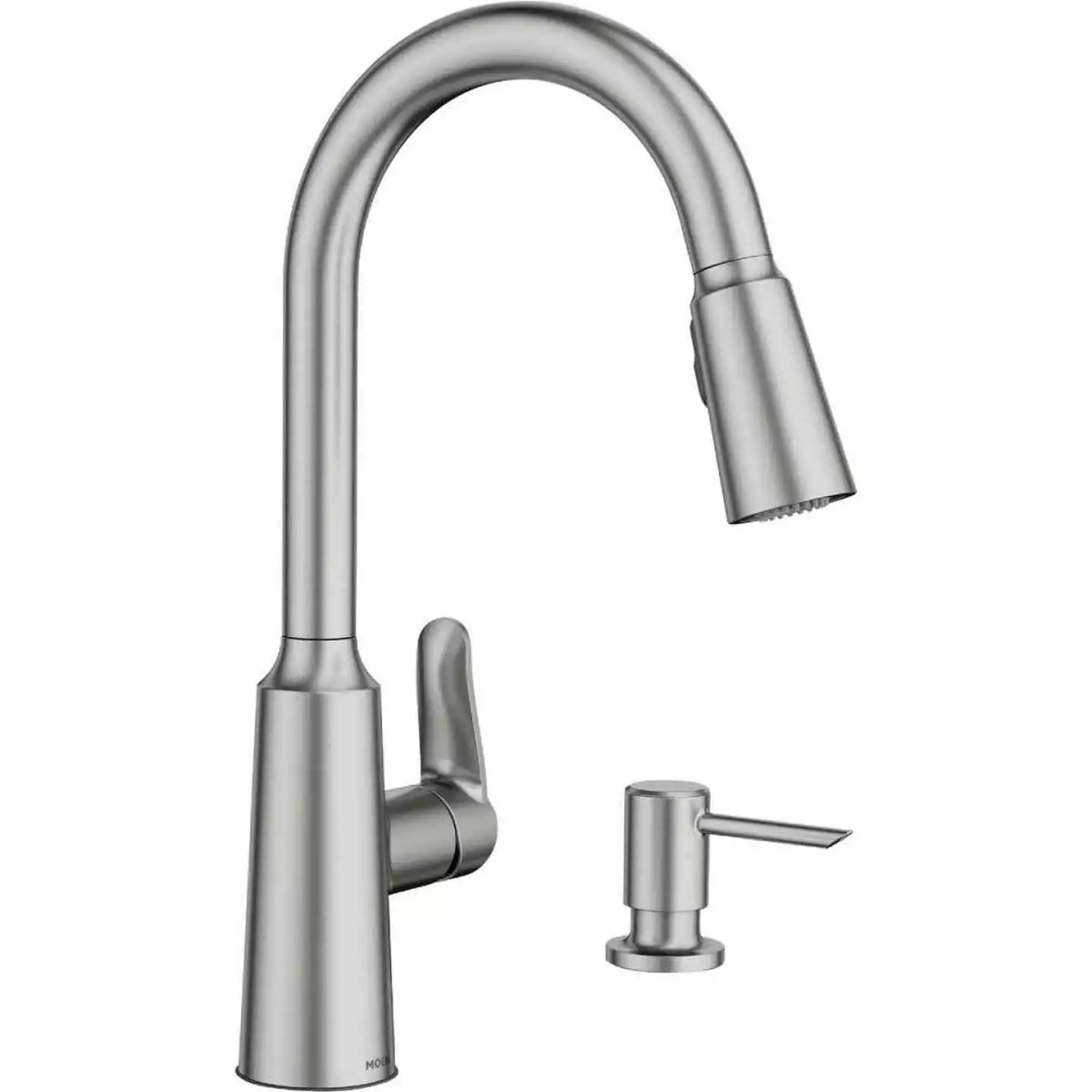 - Faucet pulldown hose offers flexible water delivery and hose retracts with ease