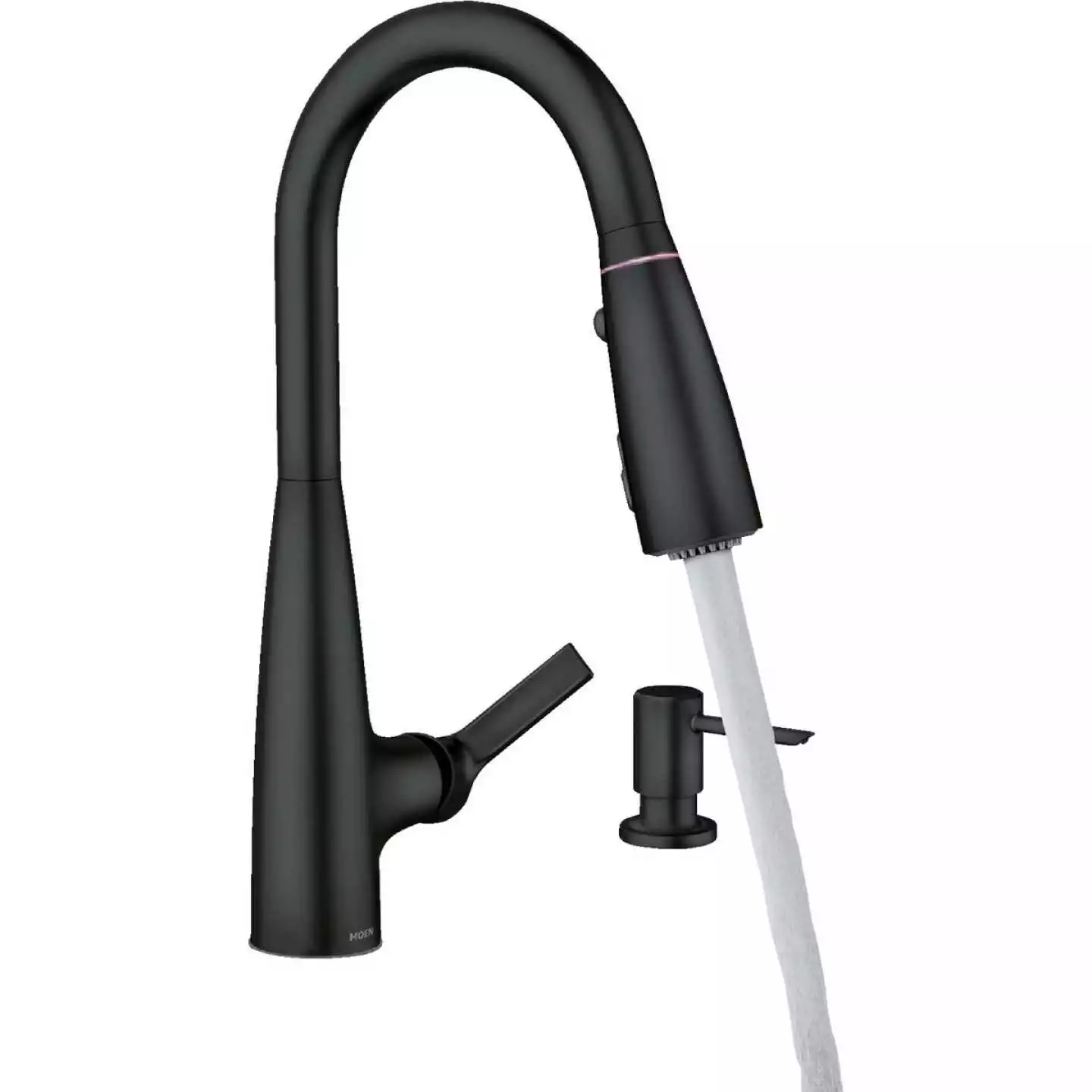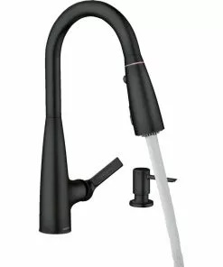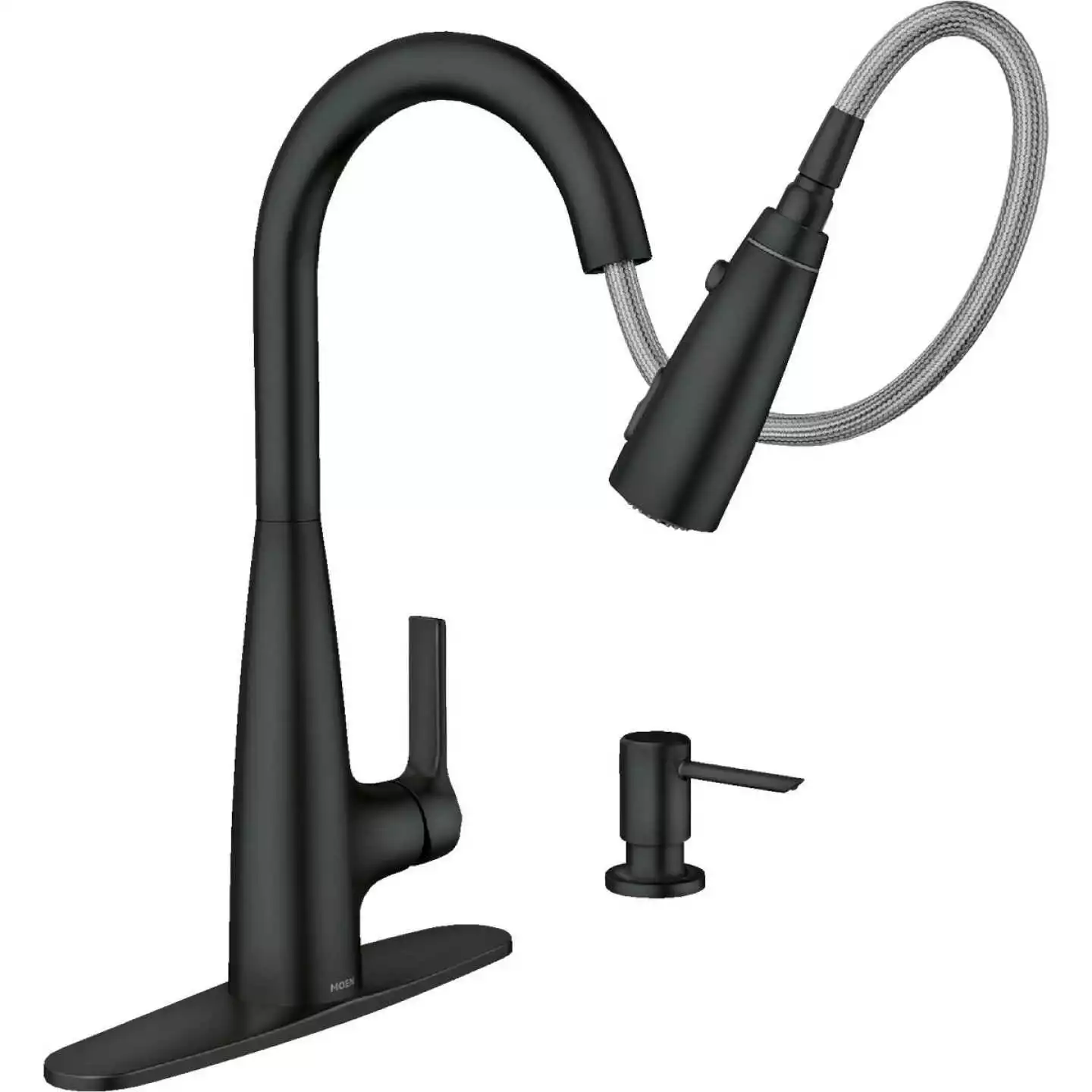 - Faucet pulldown hose offers flexible water delivery and hose retracts with ease