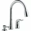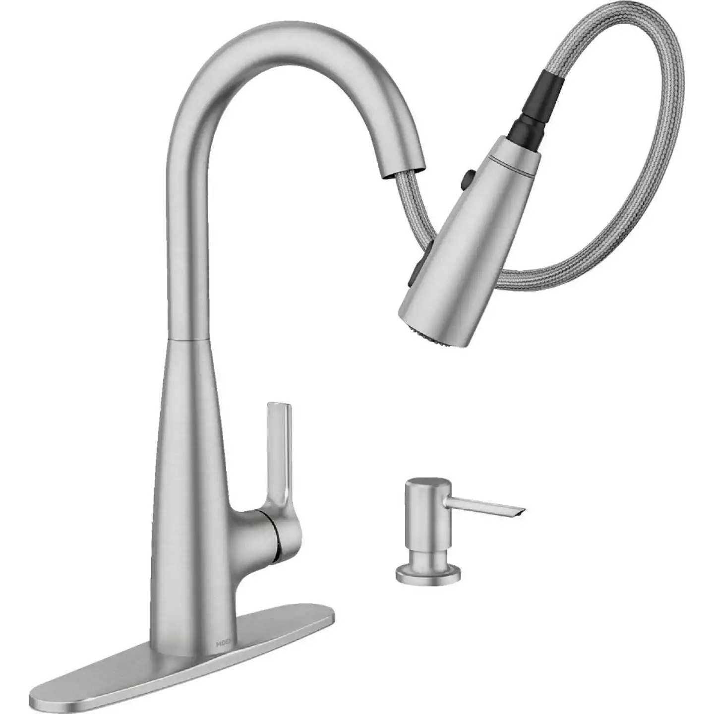 - Faucet pulldown hose offers flexible water delivery and hose retracts with ease