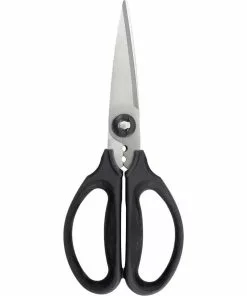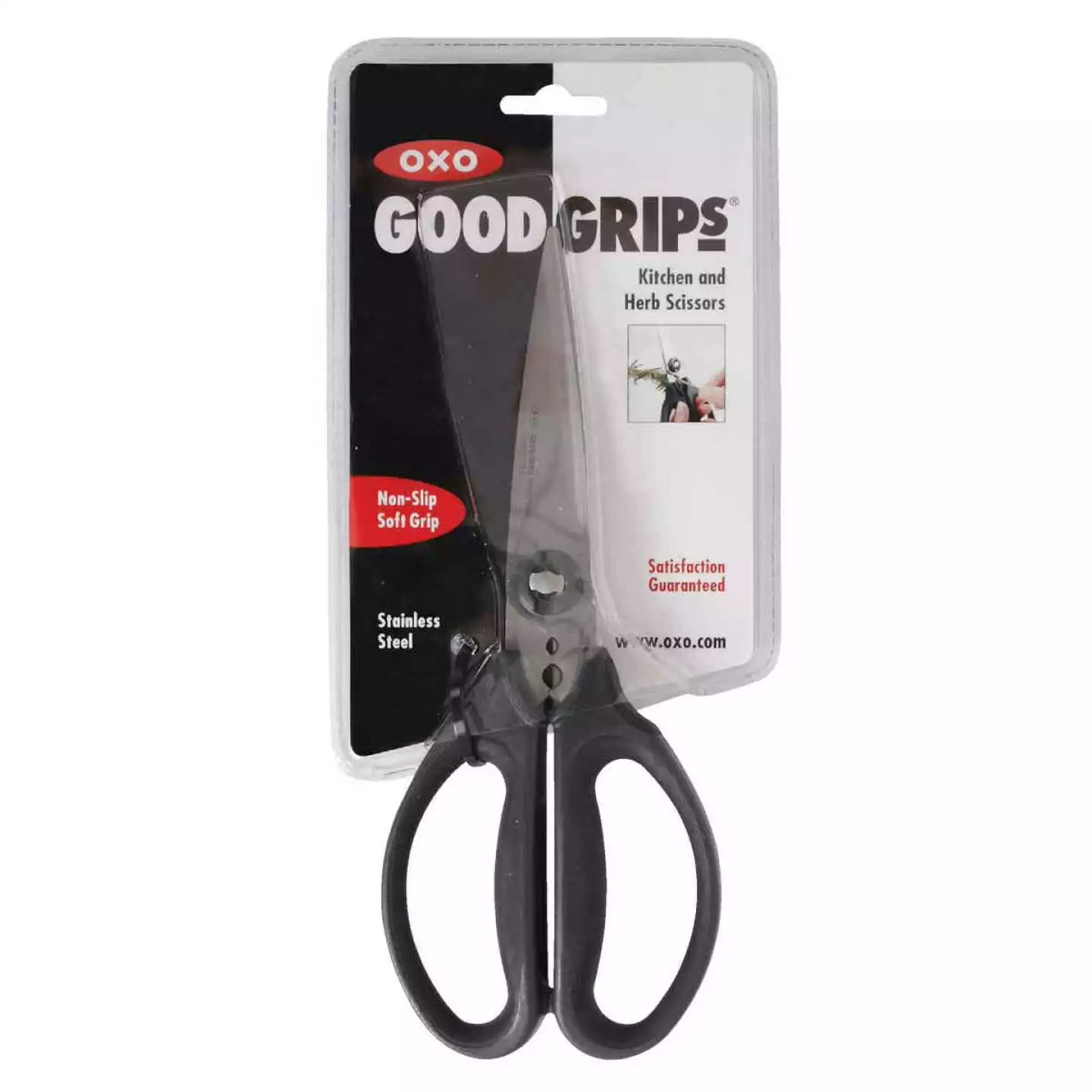 Micro-serrated blades cut through cardboard, twine, meat, vegetables, and more. Herb stripper effectively removes fresh herbs from tough stems. Soft, comfortable grip features cushioning pads that absorb pressure. Blades separate for thorough and easy cleaning. Hand wash.