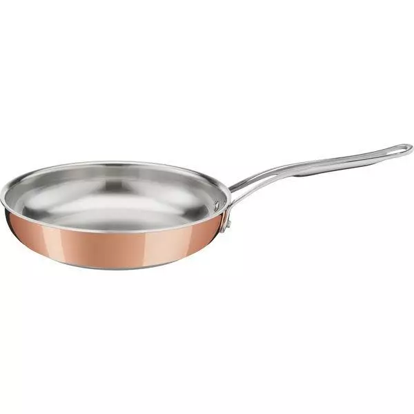 Tefal – Jamie Oliver Premium Triply Kobber – Stegepande Ø24cm Vil du være sikker på, at maden holdes varm og tilberedes under de perfekte forhold vil en kobber pande fra Jamie Oliver by Tefal være et godt bud. Denne kobber pande er lavet i 3 lag, hvilket