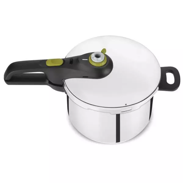 Tefal Secure 5 Neo Trykkoger P2530738Produktegenskaber for Tefal Trykkogerâ¢Rustfrit stål med dampindsatsâ¢2 kogemuligheder 0,5 og 0,8 barâ¢Tredobbelt bundâ¢Glidende håndtag i bakelitâ¢Passer til alle komfurtyper inkl. Induktionâ¢Tåler opvaskemaskin